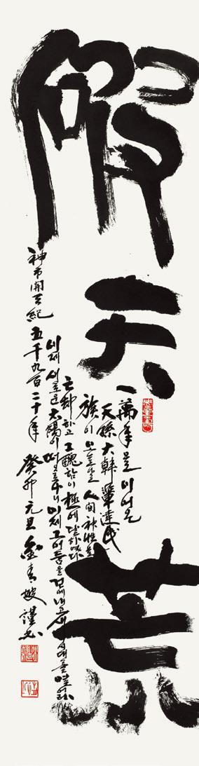 이번 전시에는 <마고지나대신상(麻姑之那大神像)>, <옥벽 천부경(玉璧 天符經)> 등의 유물과 <삼족오(三足烏)>, <천종천부경(靝宗天符經)> 등의 작품을 선보였다.